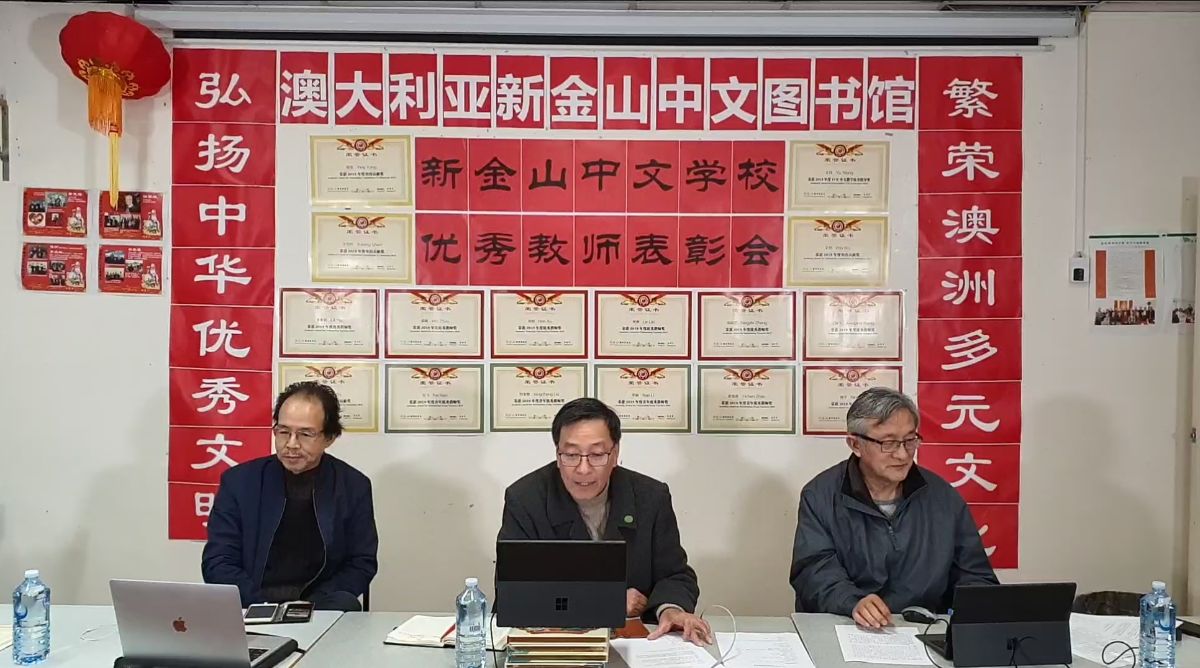 会议首先表彰了牛莉莉、卓敏、徐晗、林琳、郑凝芝、林宁和汪献平等32位优秀教师,和一个优秀先进集体新金山西区中文学校。校委会主席孙浩良代表校委会向获得荣誉的集体和个人表示由衷敬意,并充分肯定了他们在疫情之下的优秀表现。他说,这些获得荣誉的老师和集体是经得住考验、担得起优秀教师称号的。