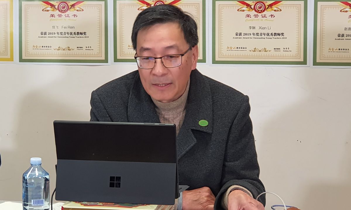 校委会主席孙浩良肯定了新金山中文学校第二学期的网上教学工作,并对全体教职员工表示由衷感谢。他说,在疫情之下,学校在第二学期开启云课堂教学,面对困难和考验,老师们没有退缩和畏惧,而是怀着崇高的使命感和责任心走进云课堂,迎接全新的挑战。他为新金山中文学校全体教职员工感到自豪,同时也提醒老师们要清醒地认识到,疫情尚未结束,网课还将持续,未来的道路上也仍然会有曲折,要很好地总结经验教训,不断加强队伍建设,不断提高教学质量,以更加优异的成绩迎接2020年的全校表彰大会。