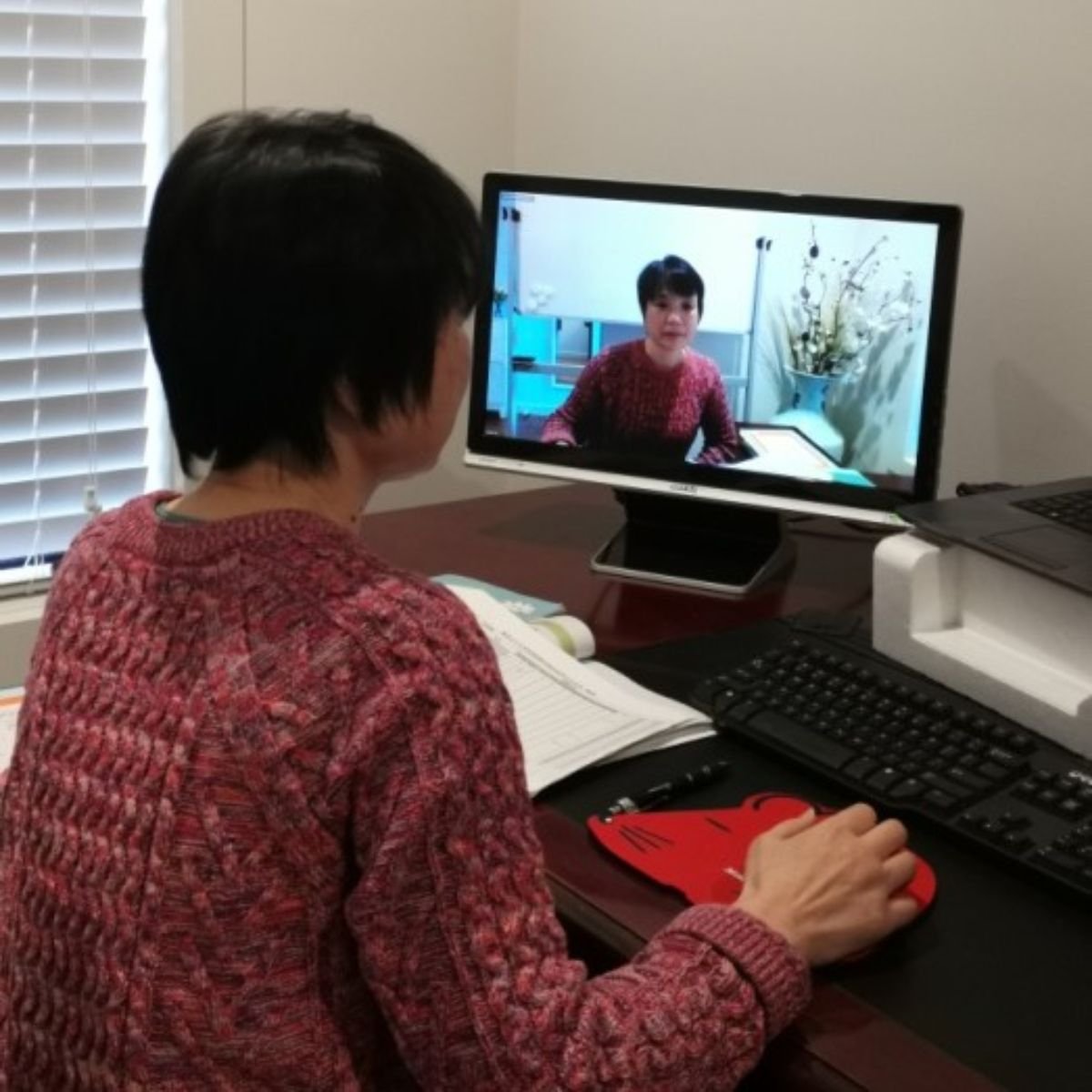 网课中的余彩媚老师